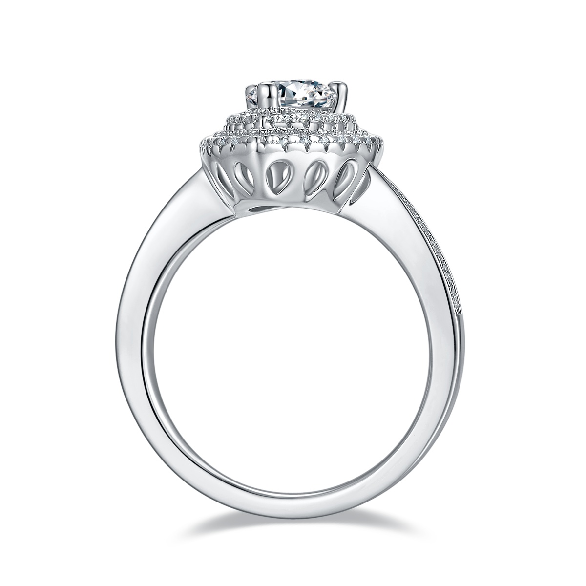 Embrace the elegance of the teardrop silhouette with The Serene™. A masterfully cut pear shaped moissanite ring that combines modern sophistication with a timeless, elongated glow.